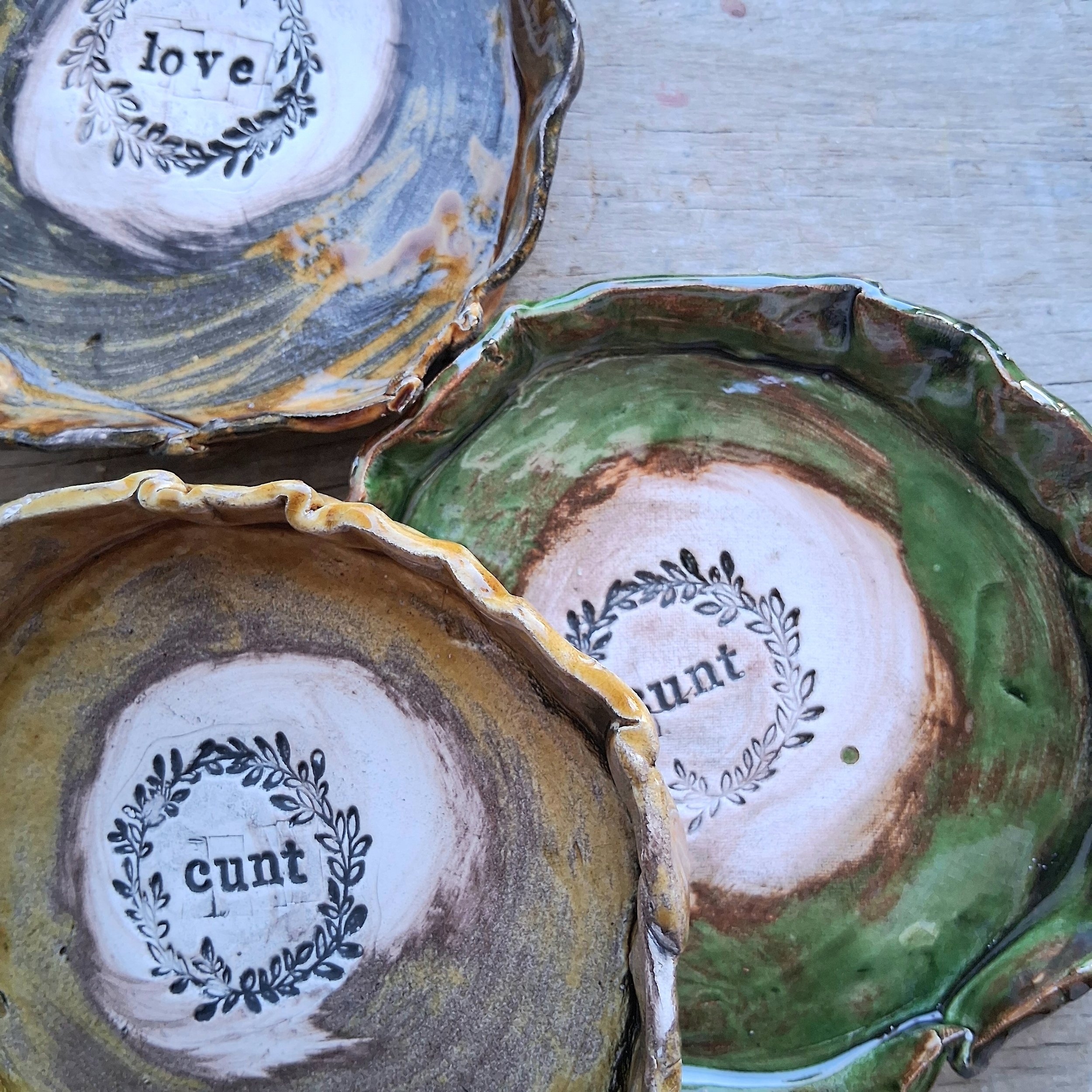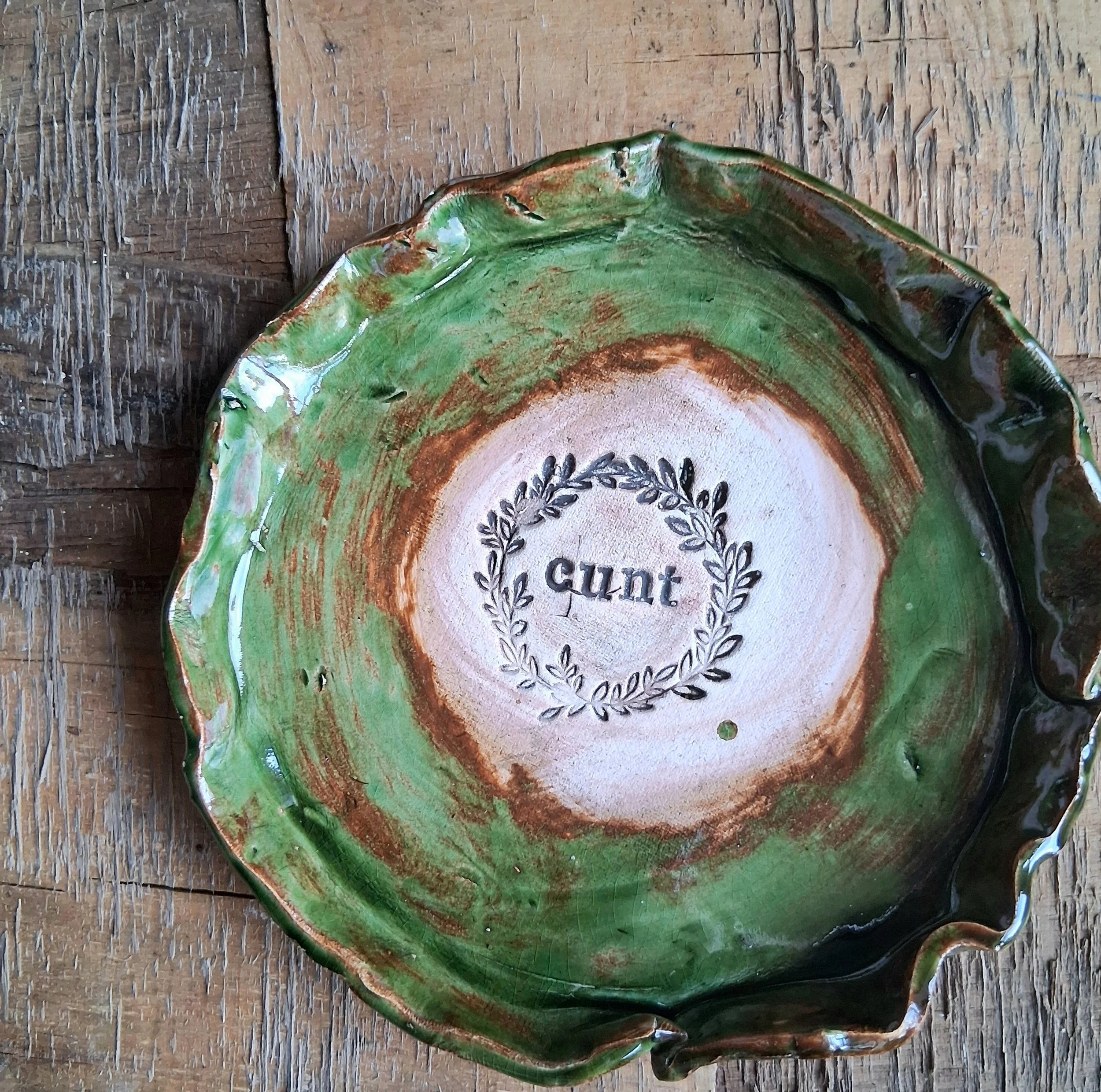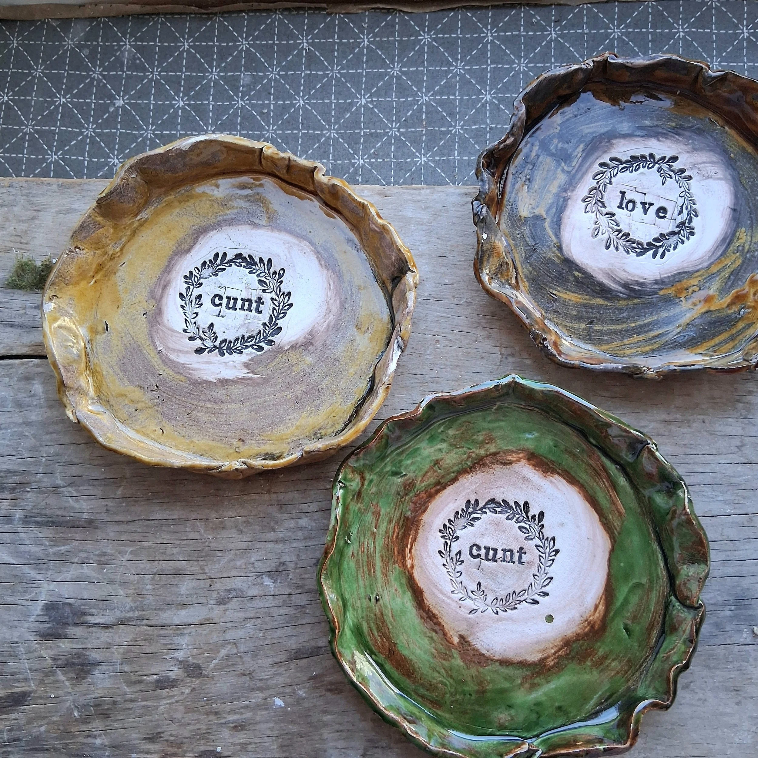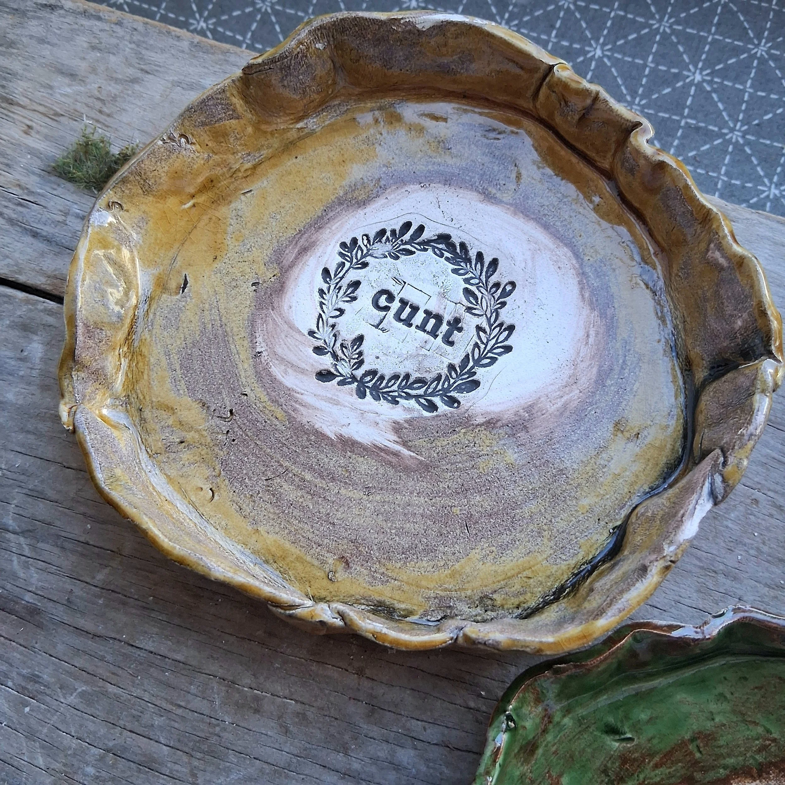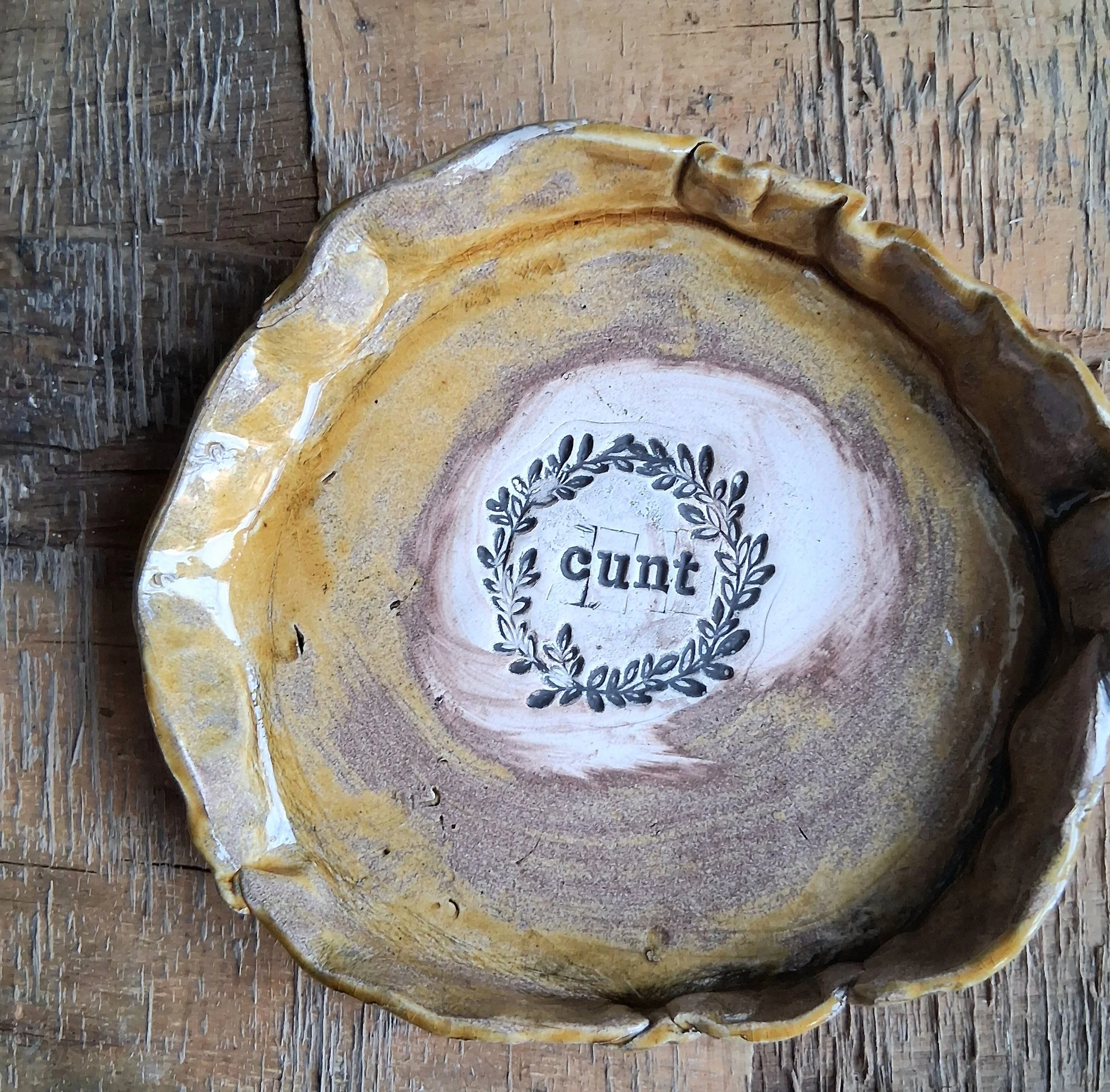 Stoneware C*nt plate available in olive green, dark brown or Ochre